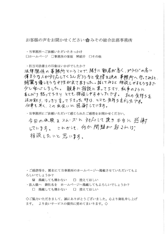 ・当事務所にご依頼いただいて感じられたご感想をお聞かせください。